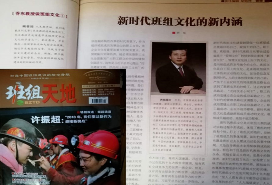 我国唯一国家级班组杂志《班组天地》2018年第1期开办“乔东教授谈班组文化”专栏,至今已有6年,成为杂志品牌栏目。
