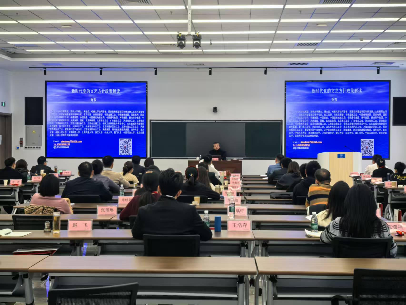 近日,乔东在中国中铁党校为中国中铁职工文艺骨干培训班宣讲新时代党的文艺方针政策课程。乔东指出,新时代职工文艺工作要以党的二十届四中全会精神特别是习近平总书记在文艺工作座谈会上的重要讲话精神为指导,以《中共中央关于繁荣发展社会主义文艺的意见》为遵循,按照《中华全国总工会关于加强新时代职工文化建设的指导意见》的要求,以培育和践行社会主义核心价值观为主线,以“中国梦•劳动美”为主题,以满足职工群众精神文化需求为中心,着力构建职工文化繁荣发展的工作体系,为实现中华民族伟大复兴的中国梦提供强大价值引导力、文化凝聚力和精神推动力等。中国中铁为贯彻落实《中共中央关于繁荣发展社会主义文艺的意见》特别是习近平总书记关于文艺工作的重要论述,大力繁荣职工文化,弘扬社会主义核心价值观和劳模精神、劳动精神、工匠精神,大力弘扬开路先锋精神,增强职工群众文化自信,组织开展了“凝心铸魂跟党走、团结奋斗新征程”——摄影、书画、文学、文艺、视频等职工文化“五个一”作品征集活动、各级工会组织广泛宣传、积极动员,广大职工群众踊跃参与,涌现出来一大批优秀职工文化作品,充分展示了中国中铁在社会主义现代化强国建设征程中取得的巨大成就,充分彰显了中国中铁“勇于跨越、追求卓越”的企业精神,充分展现了新时代中国中铁职工踔厉奋发的新风貌。